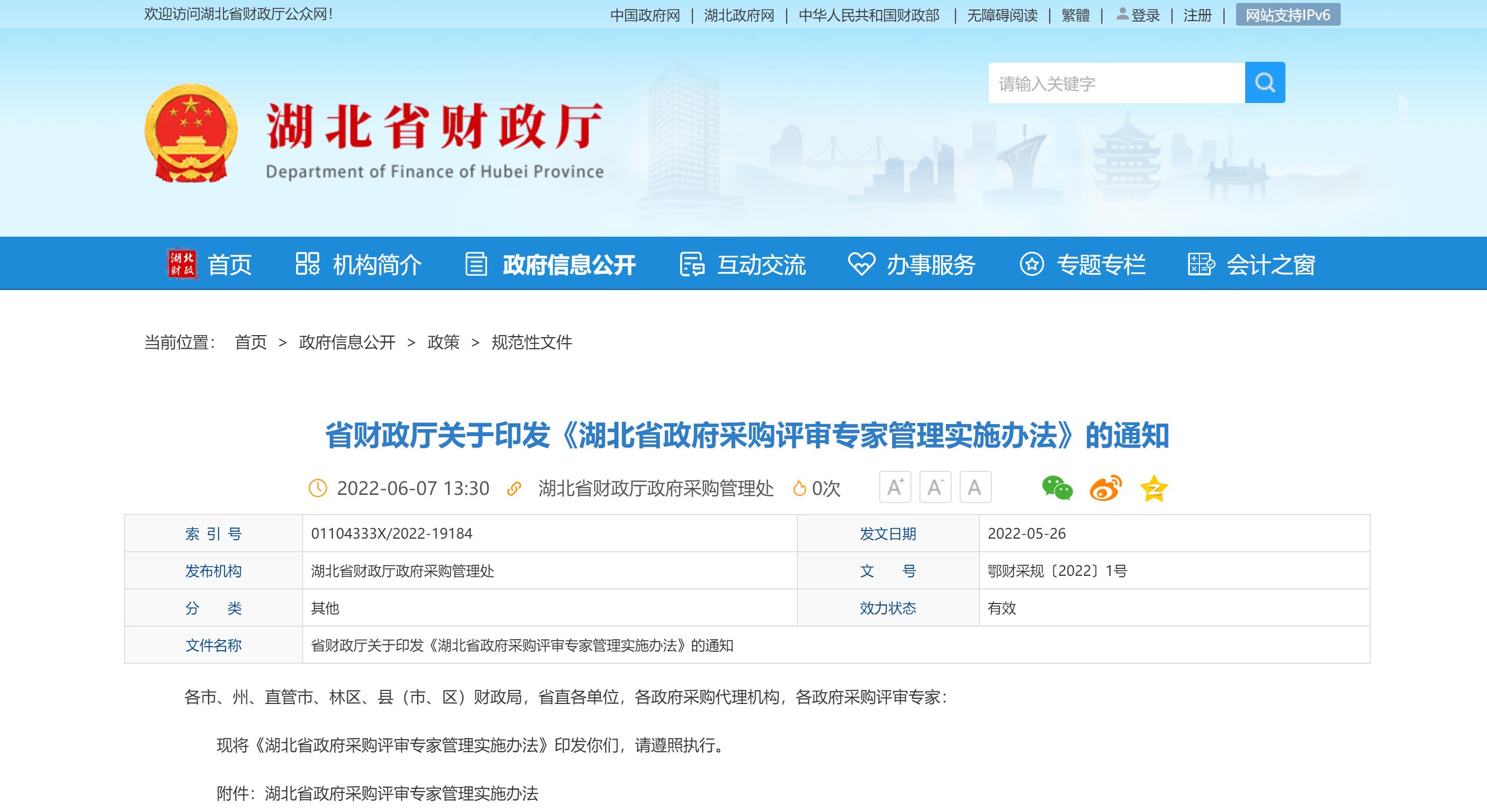 財(cái)政廳 | 湖北評(píng)審專家管理“升級(jí)...