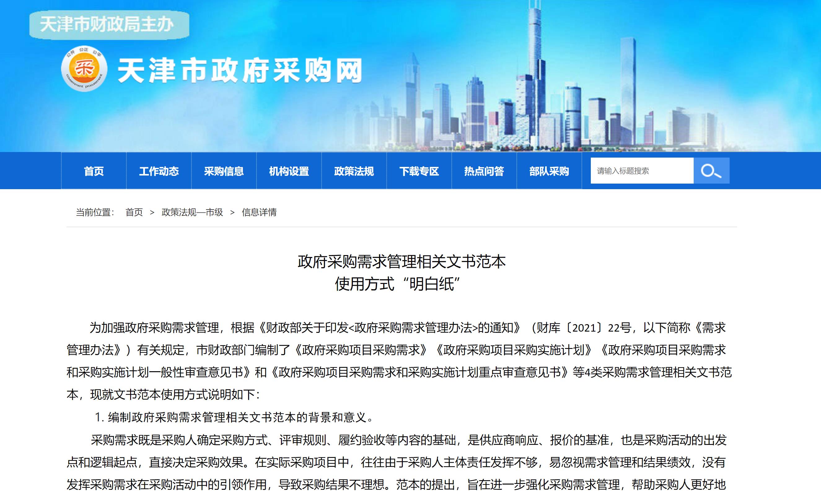 天津印發(fā)政府采購(gòu)需求管理相關(guān)文書...