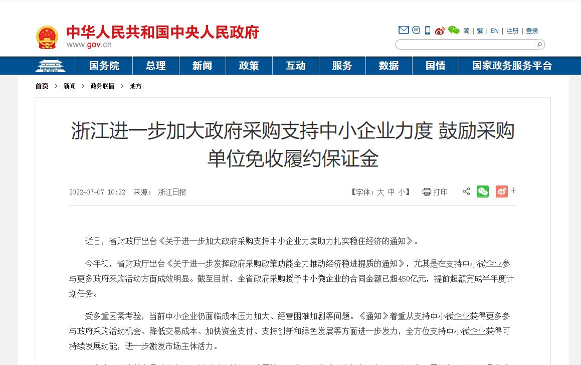 浙江丨進(jìn)一步加大政府采購(gòu)支持中小...