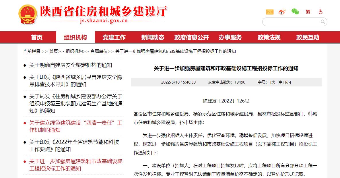 近日,陜西省住房和城鄉(xiāng)建設(shè)廳發(fā)布《關(guān)于進一步加強房屋建筑和市政基礎(chǔ)設(shè)施工程招投標(biāo)工作的通知》(以下簡稱《通知》),要求建設(shè)單位(招標(biāo)人)在對工程項目招標(biāo)發(fā)包時,應(yīng)將工程項目所有分部分項工程一次性發(fā)包招標(biāo)。專業(yè)工...