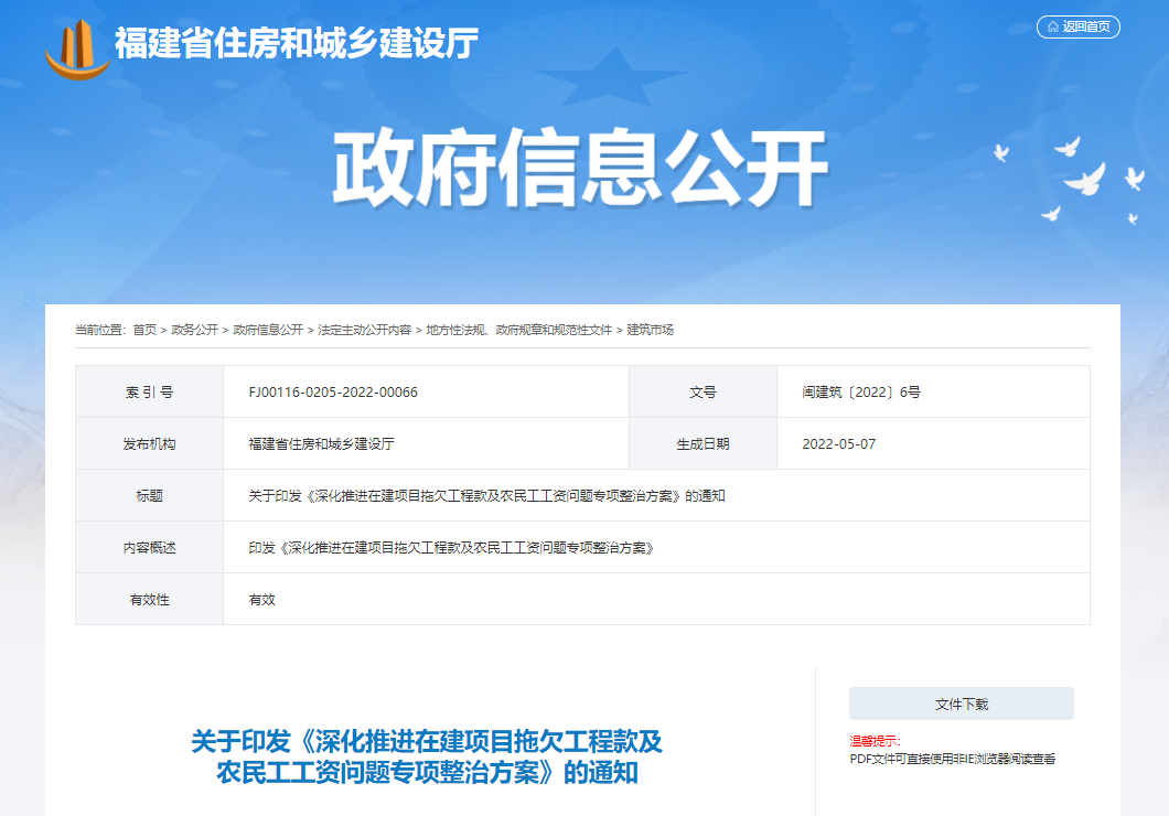 福建:深化推進(jìn)拖欠工程款和農(nóng)民工工...