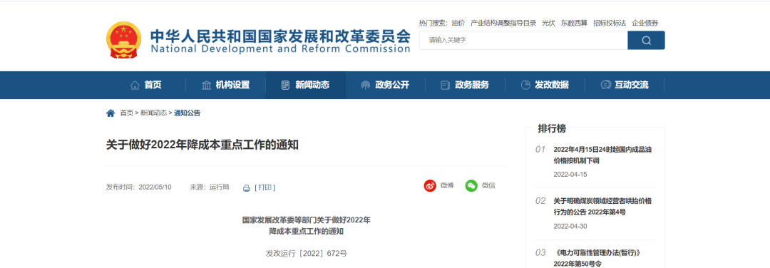 5月10日,國(guó)家發(fā)展改革委、工業(yè)和信息化部、財(cái)政部、人民銀行發(fā)布關(guān)于做好2022年降成本重點(diǎn)工作的通知。通知提出,為深入貫徹中央經(jīng)濟(jì)工作會(huì)議精神,落實(shí)好《政府工作報(bào)告》提出的各項(xiàng)降成本重點(diǎn)任務(wù),繼續(xù)加大助企紓困力度,2...